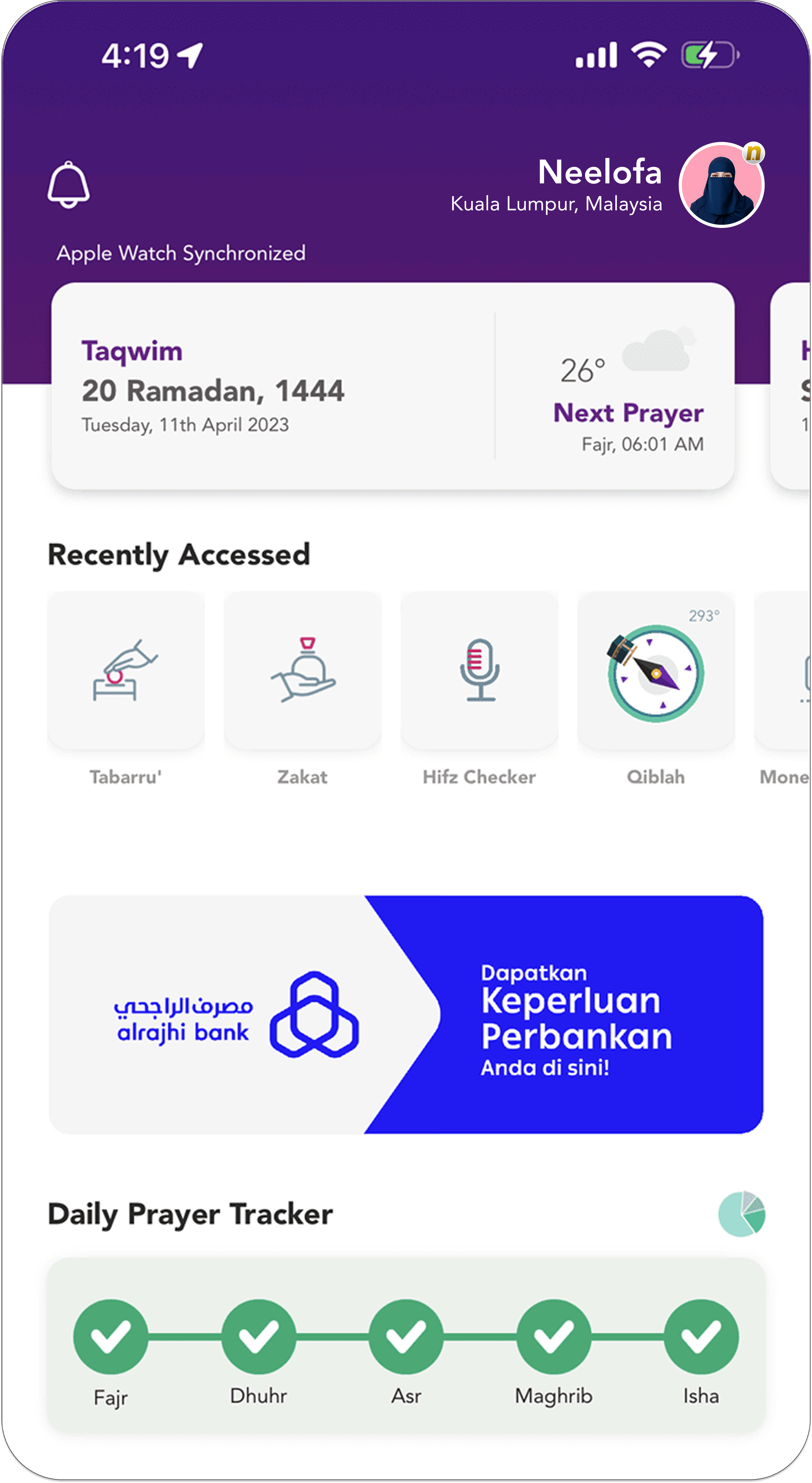 Vibrant & contemporary Al-Quran player with multi-reciter selections.